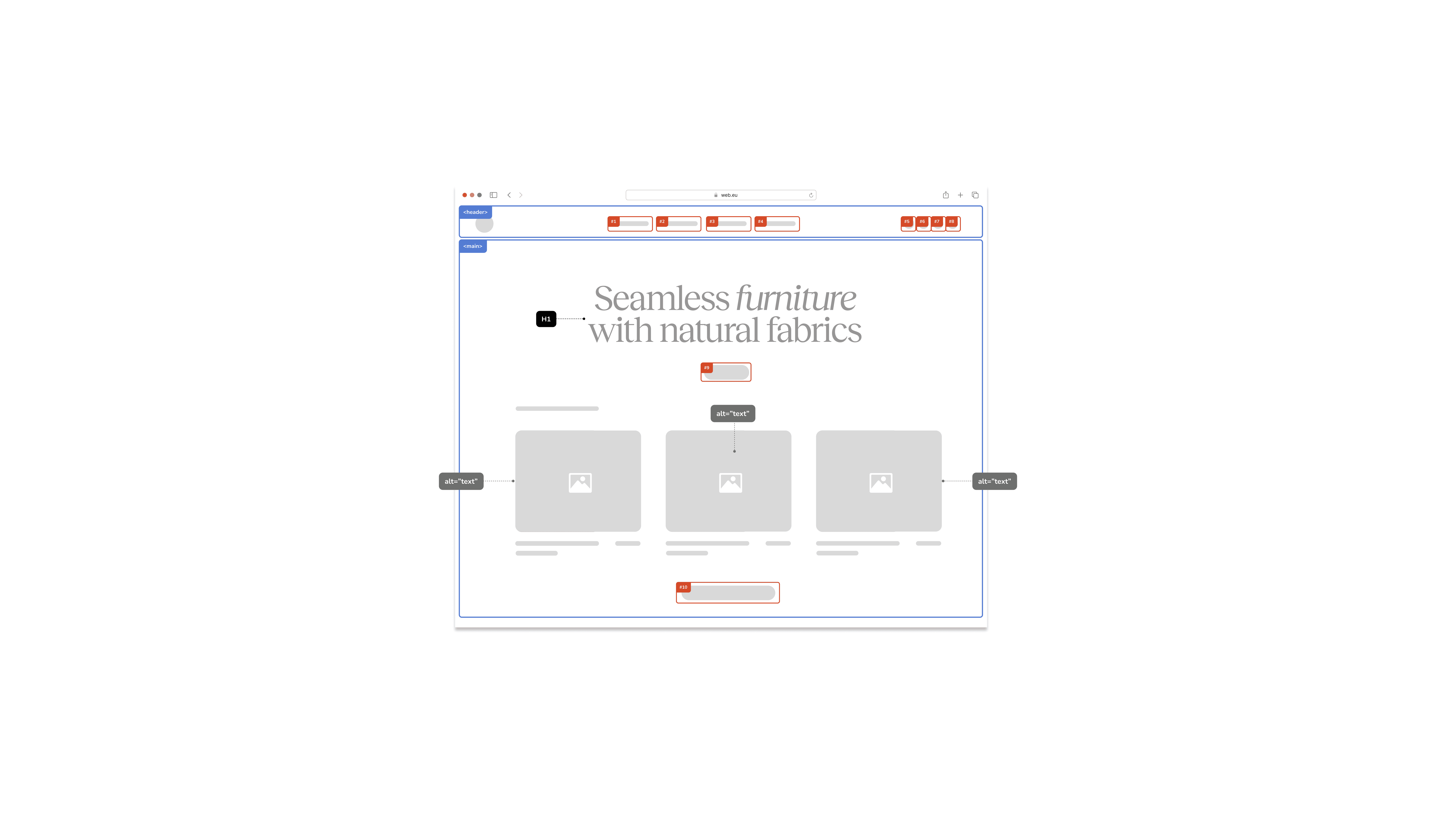 Heading Tags: Specifies the hierarchical structure of headings (h1, h2, h3, etc.) to enable coherent navigation and proper interpretation of content by screen readers.
